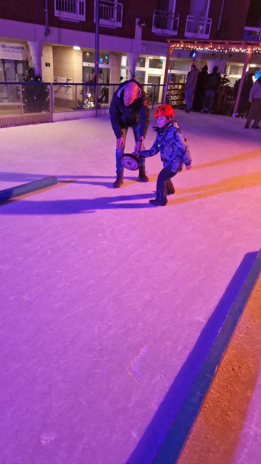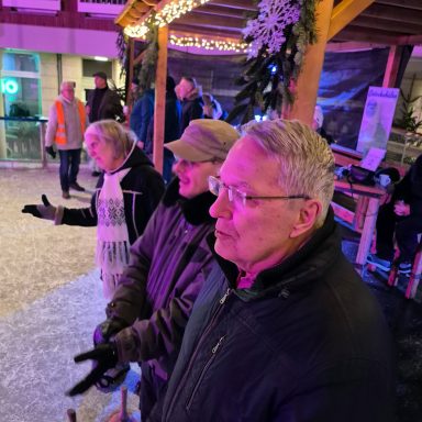 Die Stadt Monheim baut in jedem Jahr eine Eisbahn im Zentrum auf. Dort kann man nicht nur Eislaufen, sondern auch Eisstockschießen. Diese Plattform nutzen wir als FBA "zwischen den Jahren" als alljährlichen Abschluss unseres Vereinslebens. Für eine Stunde stehen uns drei Bahnen zur Verfügung. Auch hier werden die Kosten für die Bahn vom FBA übernommen.