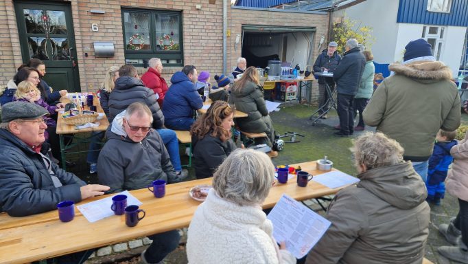 In entspannter Atmosphäre sammeln sich die Mitglieder des FBA und Interessierte am Wendehammer des Rheinsträßchens. Es wird sich unterhalten, es gibt eine Kleinigkeit zu Essen auf Kosten des Vereins und zwischendurch werden ein paar Weihnachtslieder gesungen. - Ein perfekter und entspannter 2-3 stündiger Abschluss der Adventszeit. In aller Ruhe kommen wir am 4. Advent vor den Weihnachtsfeiertagen zusammen und besinnen uns auf unser Gemeindschaft.
